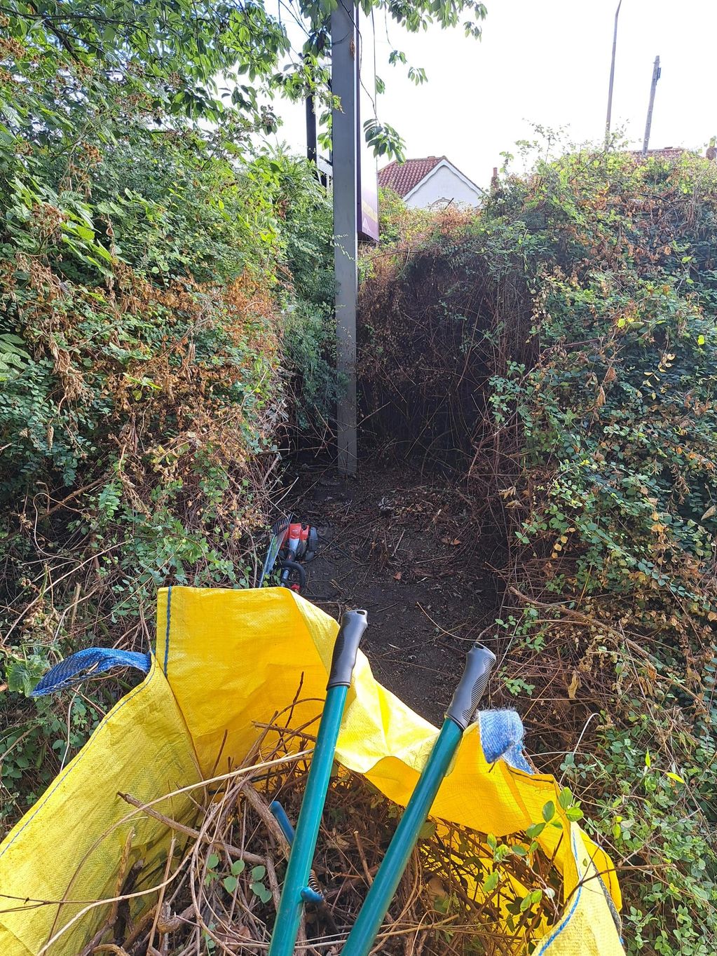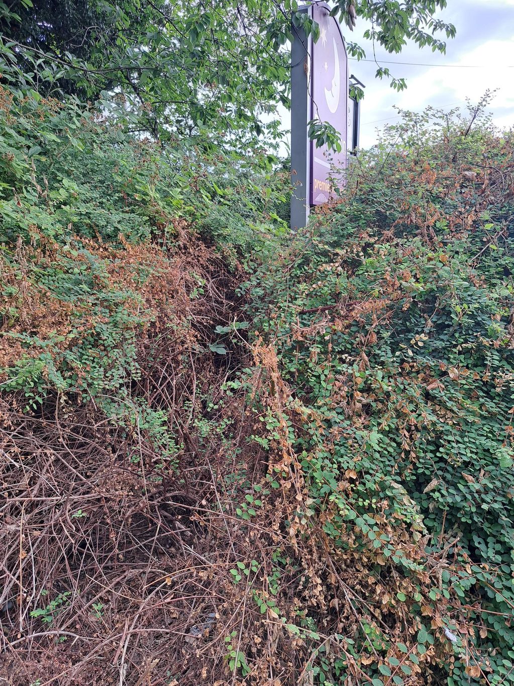 Before starting work, I carried out a full survey of the area. The business needed space to install a new commercial sign safely, but access was blocked by overgrown bushes. I checked for electric cables, bird nests, and other wildlife to make sure the work could be done responsibly and without risk.