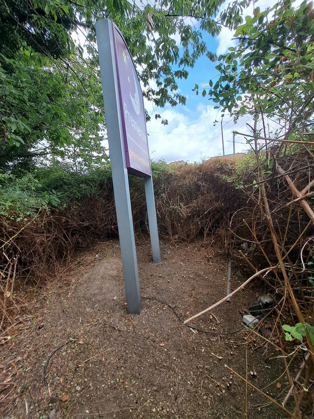 Careful cutting back was needed to clear the area for the new sign. With underground cables close by, I had to work with precision — one wrong cut could have damaged the electrics or caused a safety hazard. The goal was to create a safe, clear zone where the business could install their new sign.